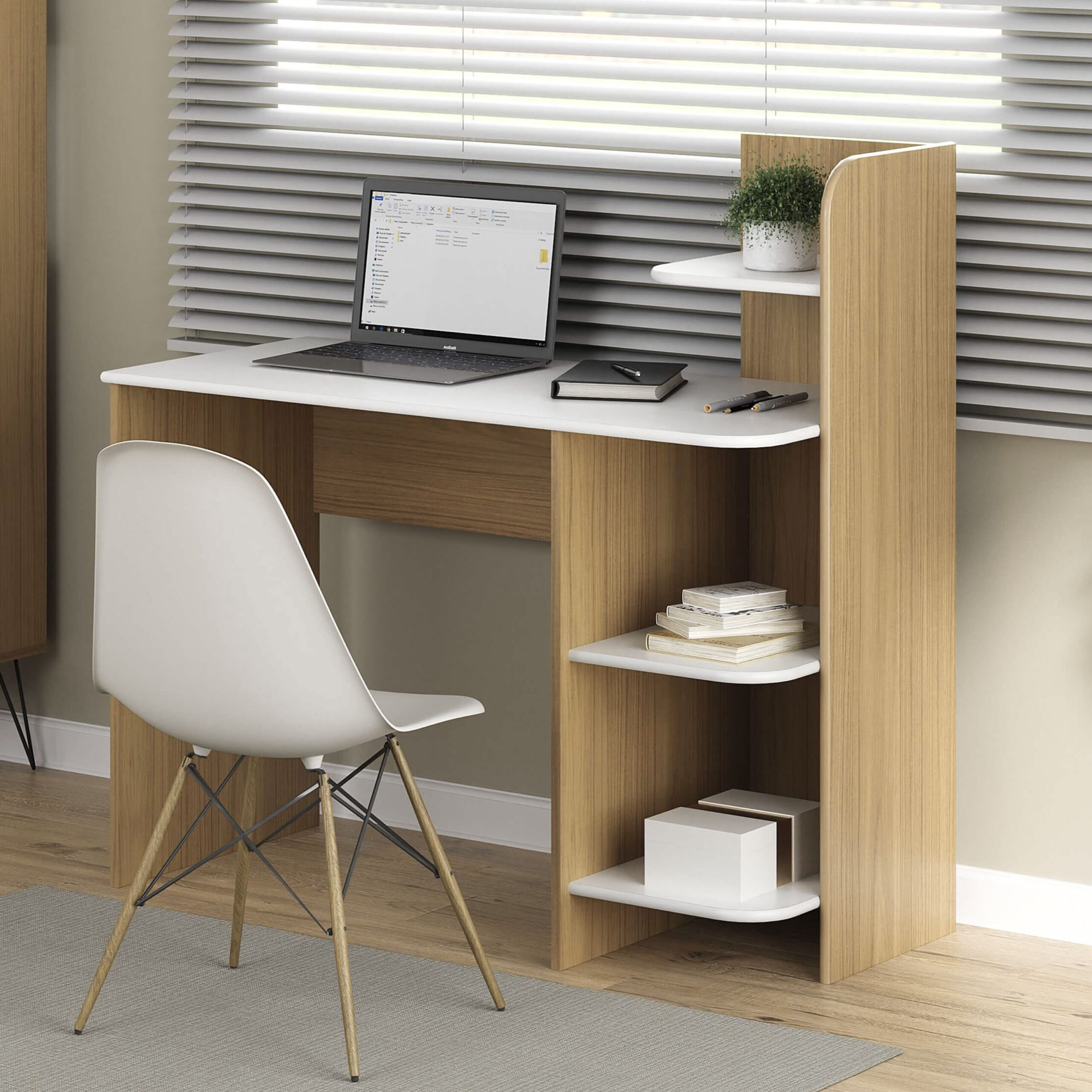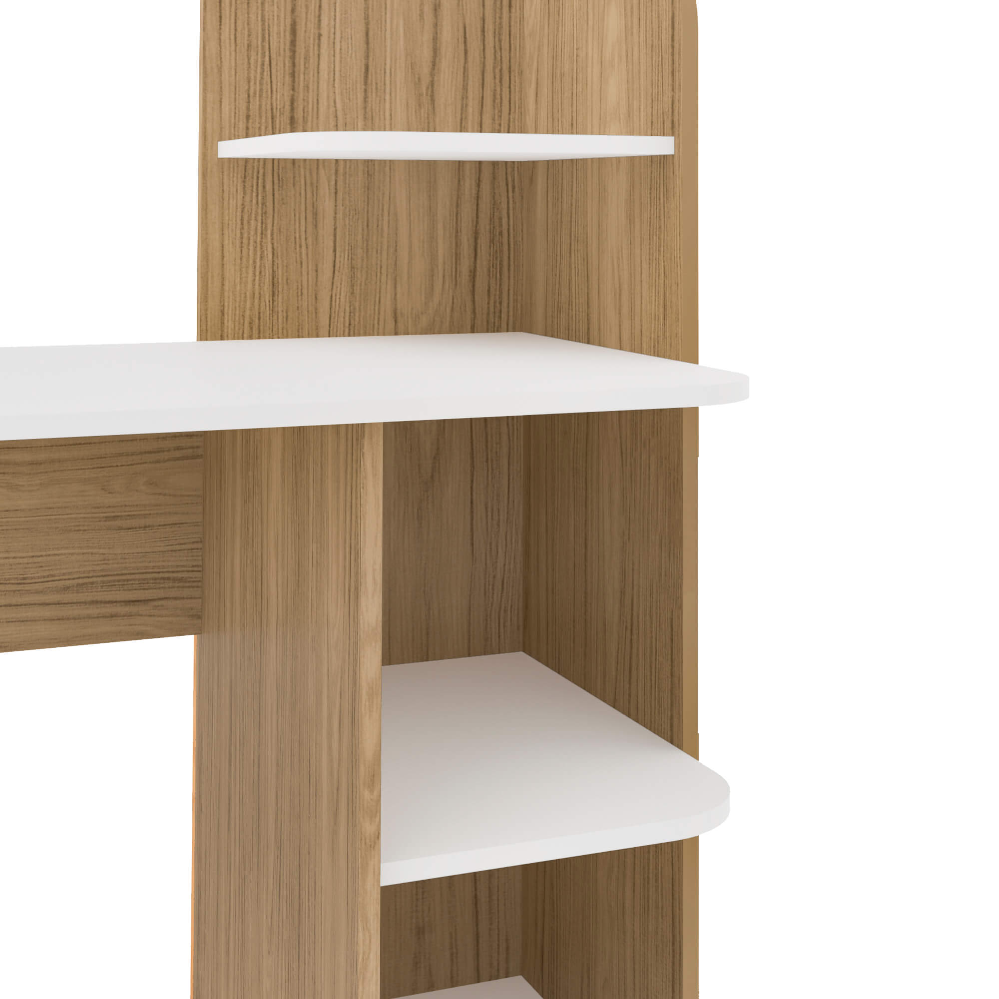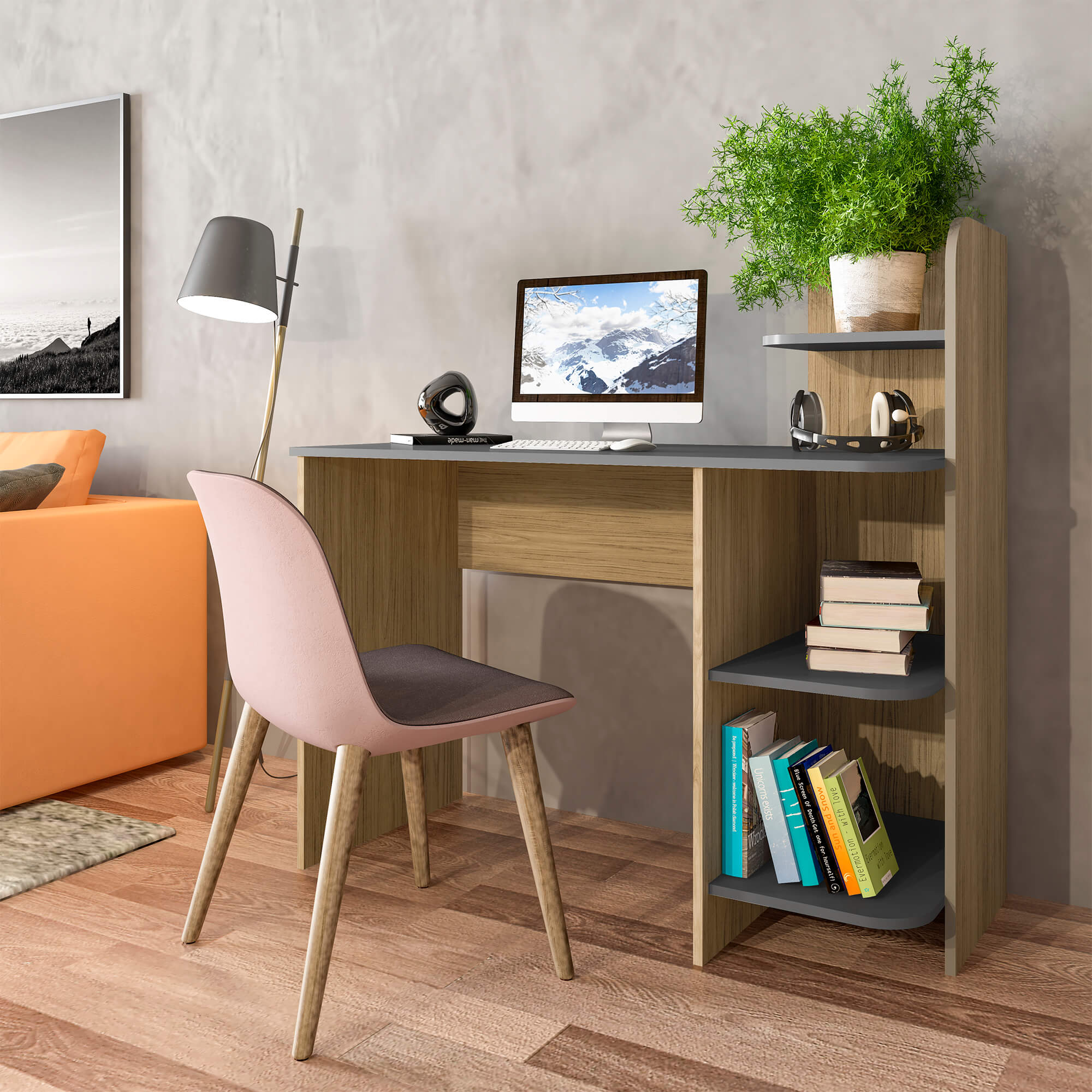 O tampo amplo acomoda com conforto computador ou notebook, além de materiais de apoio, garantindo praticidade no dia a dia. Tudo isso sem abrir mão do charme e da modernidade de um design único, que valoriza o ambiente e torna sua rotina mais funcional e inspiradora.