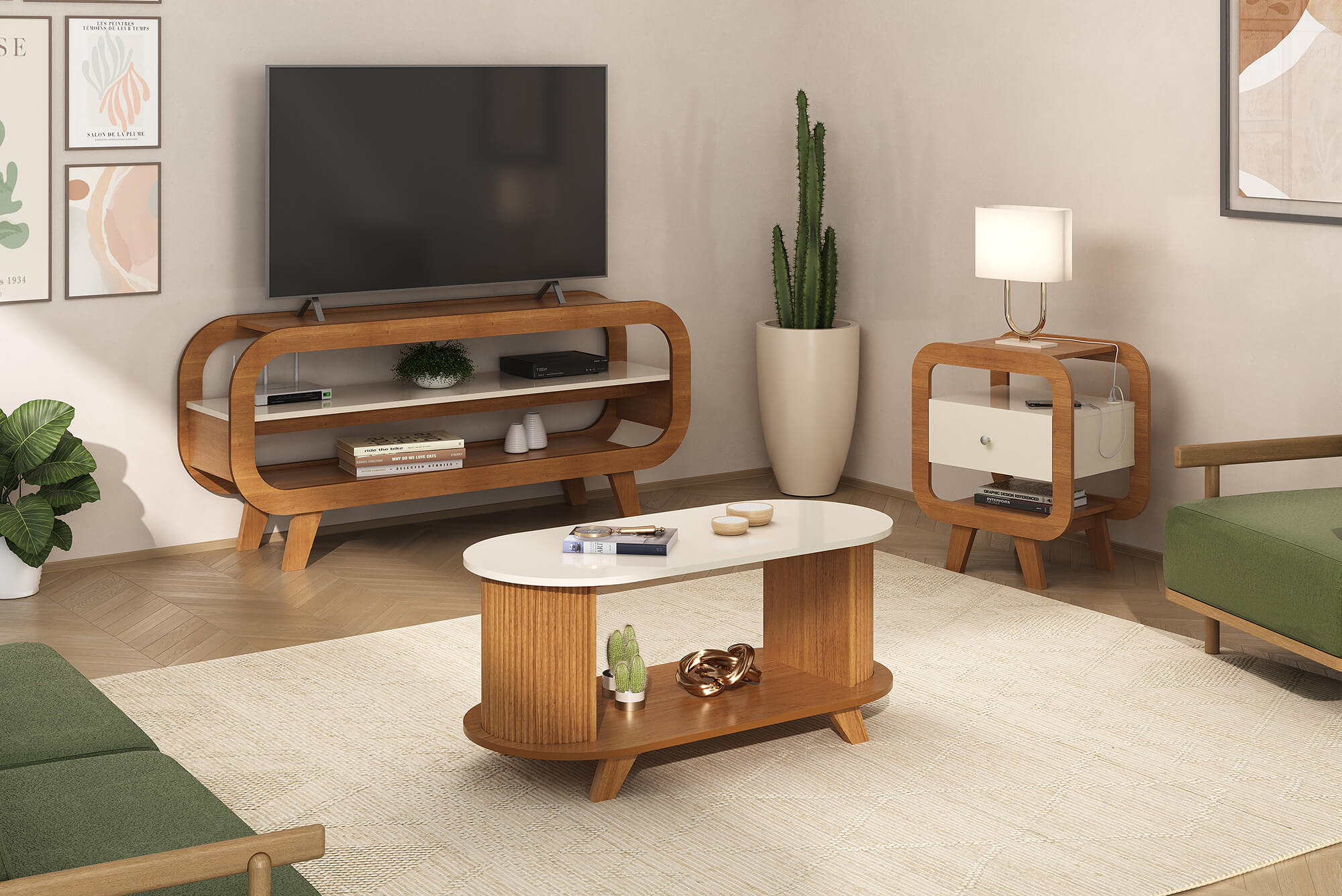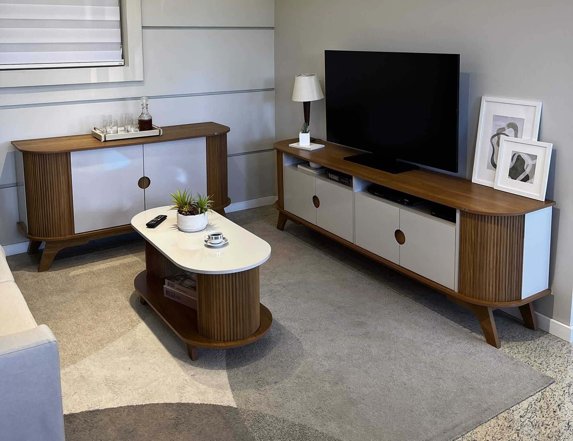 A Mesa de Centro Vivaldi leva sofisticação e aconchego à sala de estar por meio de um design autoral que valoriza formas orgânicas e proporções equilibradas, criando uma presença elegante e contemporânea no ambiente.