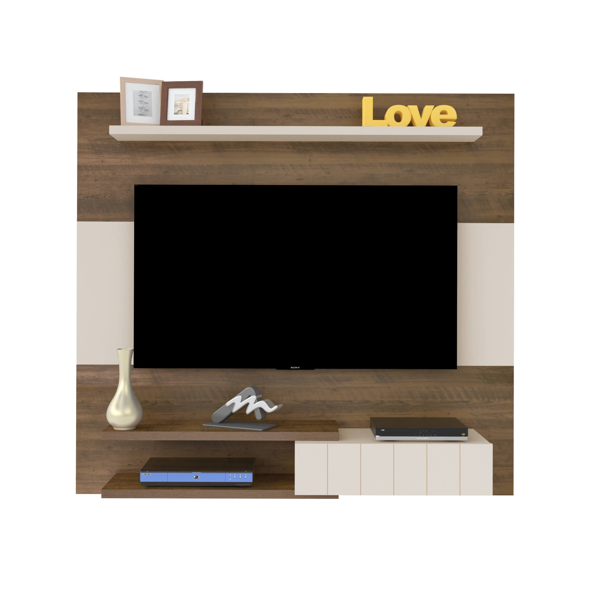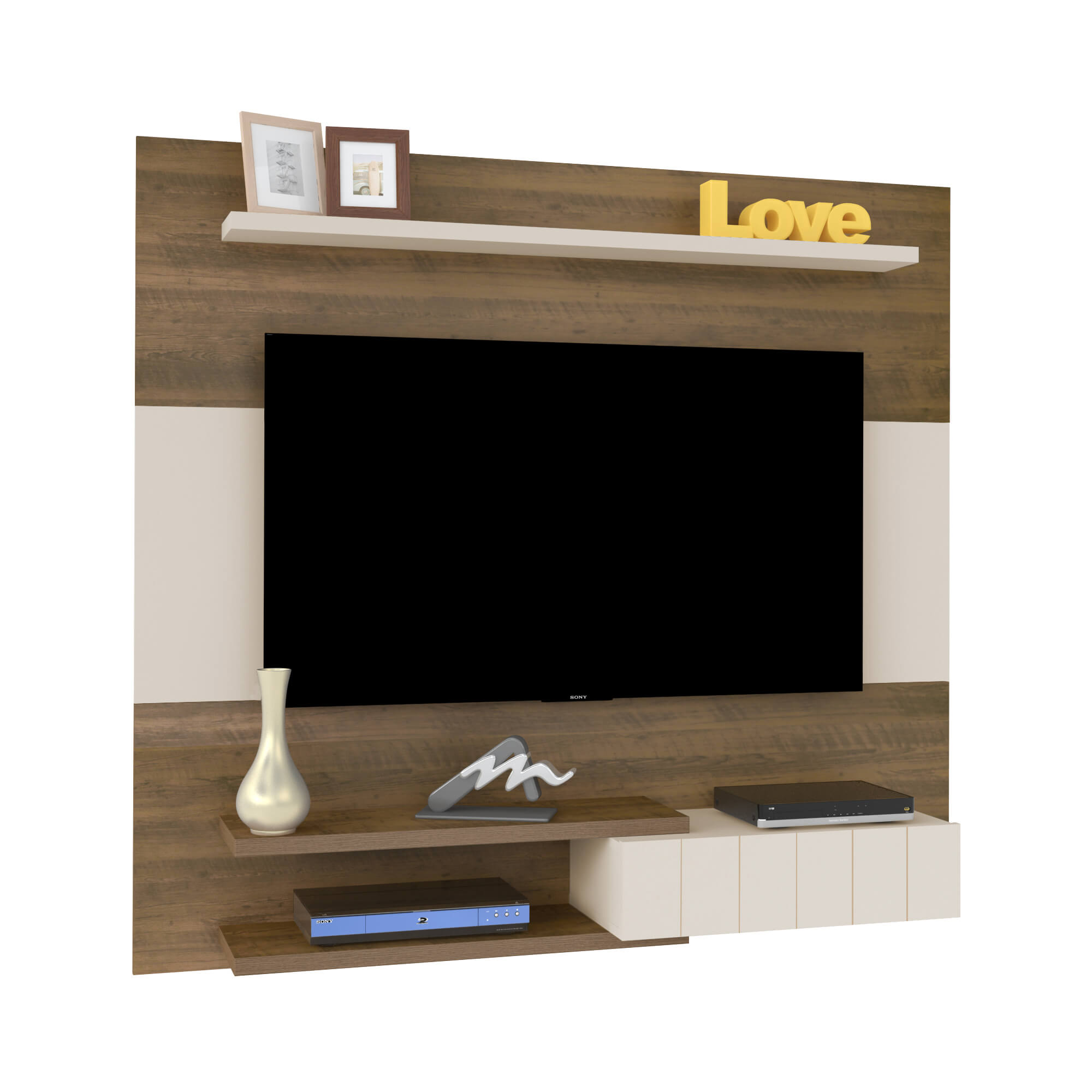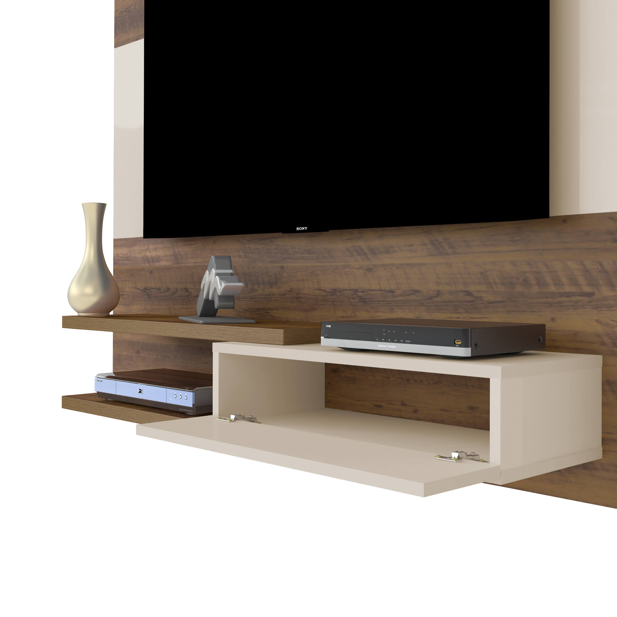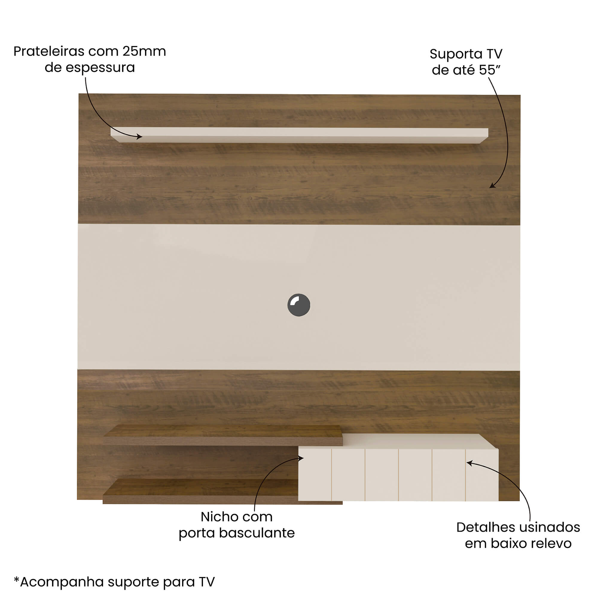 • Prateleiras de 25 mm de espessura para acessórios eletrônicos e decorações;