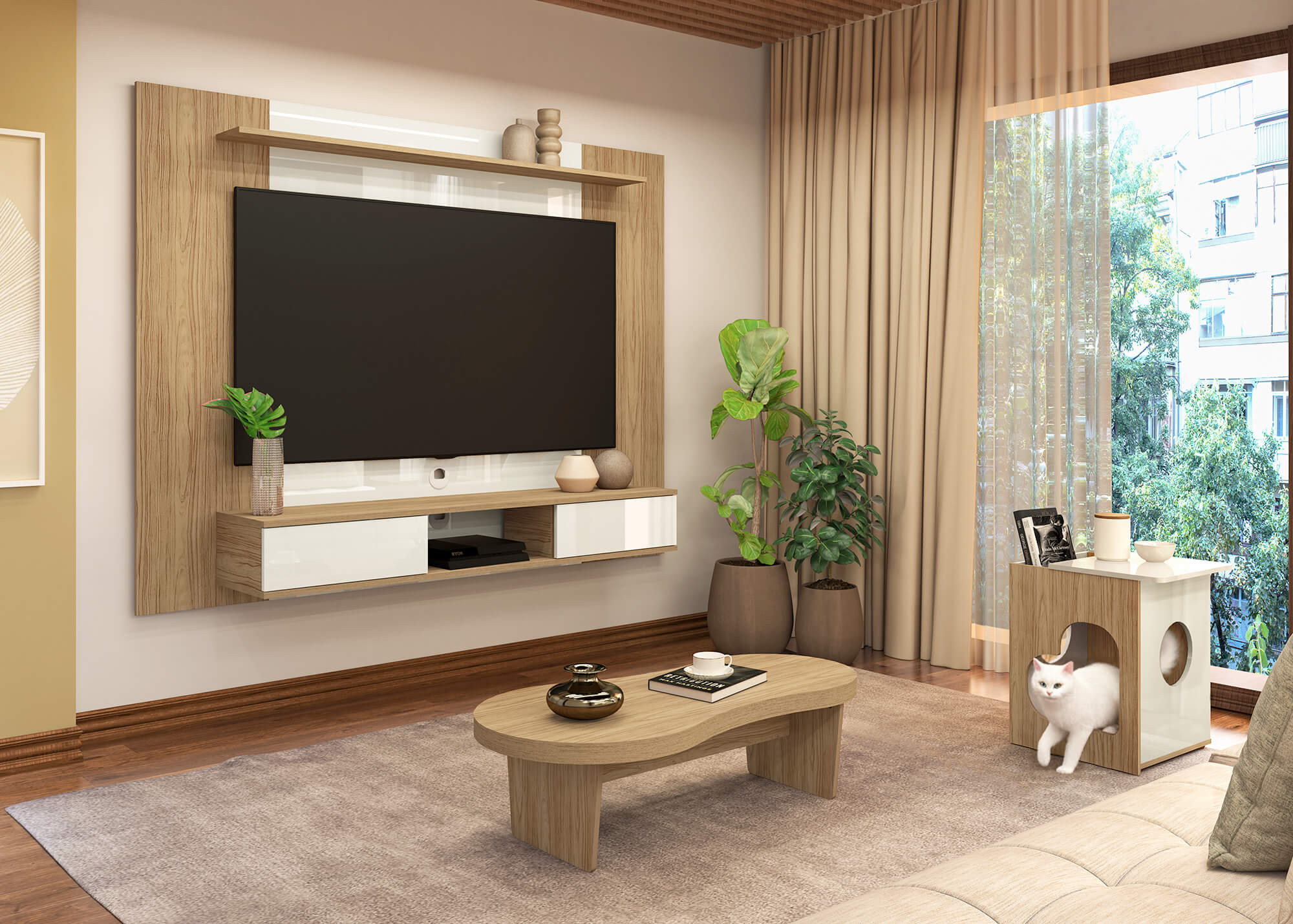 O Painel Nevada veio para trazer comodidade e elegância à sua sala de estar! Com a harmônica combinação de cores e texturas, deixa o ambiente mais agradável e aconchegante. Por ser um painel grande, ele é ideal para integrar ambientes maiores. Seu nicho, com três divisões, e sua prateleira superior, oferecem o espaço perfeito para organizar eletrônicos, decoração e objetos em geral. Além disso, por possuir duas portinhas deslizantes, fica ainda mais fácil manter tudo organizado!